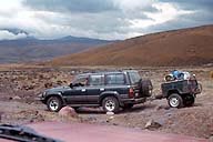einem kurzen Imbiss besteigen wir die beiden Geländefahrzeuge und