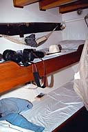 wir die Kabinen beziehen. Drei Kabinen liegen im Vorderschiff, eine