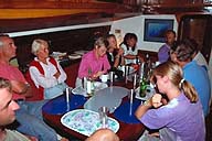 Salsaschritt bei und der Abend endet mit Salsatanzen auf dem Oberdeck.