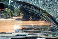 Die Piste ist in einem denkbar schlechten Zustand. Wasserloch reiht sich