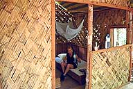 in diesem Fall offene Palmblatt gedeckte Hütten mit zwei Betten und