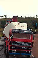Lkws auf Madagaskars Strassen verkehren. Man erkennt die Lkws leicht an