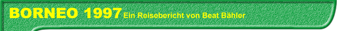 Borneo, die Insel unter den Winden hat es uns in diesem Jahr angetan. Unsere Reiseplanung wird im August von Zeitungsmeldungen über brennende Wälder und einer katastrophalen Luftverschmutzung, Haze genannt, in Borneo unterbrochen. Nachdem wir uns nicht nur aus der europäischen Presse sondern auch via Internet in der malaiischen Presse umgesehen haben, beschliessen wir trotzdem zu reisen. Voller Spannung packen wir unsere Koffer und begeben uns am Sonntag den 12. Oktober 1997 auf den Flugplatz Zürich Kloten. Hier besteigen wir bei Nieselregen die Boeing 777 der Malaysian Airways nach Kuala Lumpur.